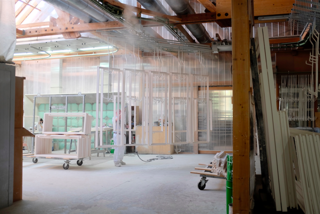 Fabrikhalle in Ebikon, Fenster spritzen, Giulia Schiess, 2016.